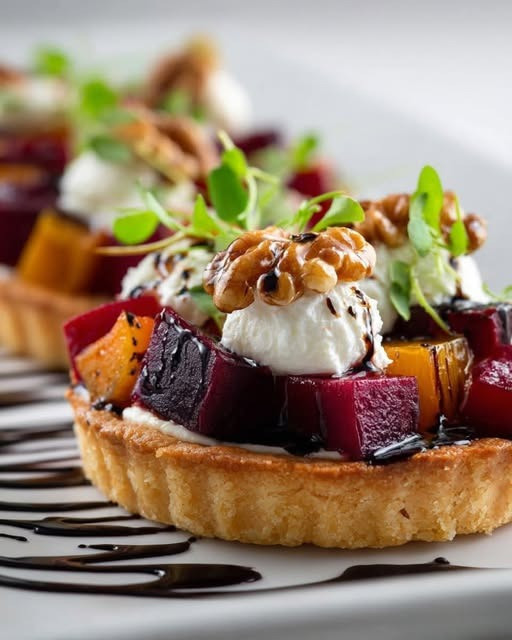 🌿 Sweet Potato Mousse Tart with Beetroot, Burrata & Walnuts 🍠