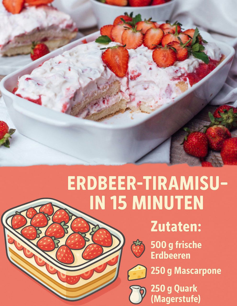15 Minuten Erdbeertiramisu, ein perfektes Dessert und ein echtes Muss während der Erdbeerzeit!