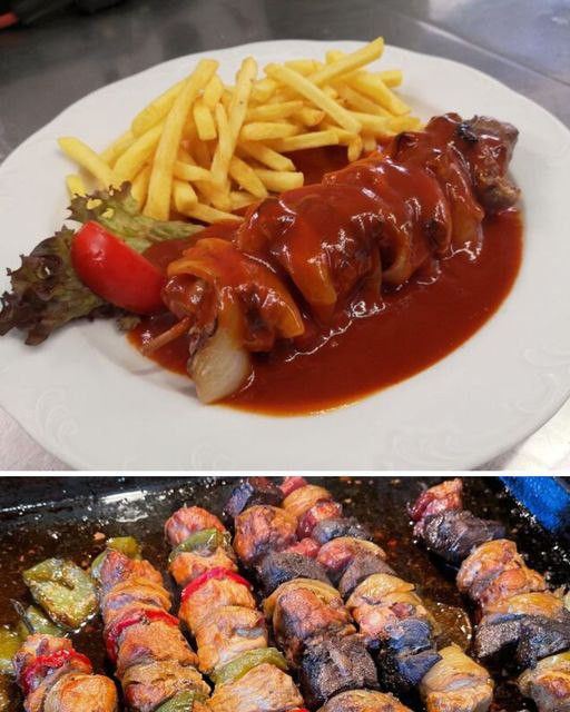 Zutaten: 500 g Hühnchenbrustfilet (Rindfleisch, Lammfleisch) 2 rote Paprikaschoten 1 große Zwiebel 200 ml Naturjoghurt 3 EL Olivenöl 2 Knoblauchzehen 1 EL Paprikapulver (edelsüß) 1 TL Kreuzkümmel Salz und Pfeffer nach Geschmack 500 g Kartoffeln Öl zum Frittieren Anleitung: siehe Fortsetzung auf der nächsten Seite