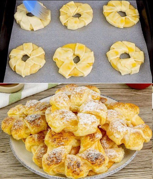 Blätterteig-Apfeltörtchen: lecker und einfach zu macheZutaten:2 Äpfel1 BlätterteigPuderzucker1 Ei zum BestreichenZucker Zubereitung: siehe Fortsetzung auf der nächsten Seite Next→