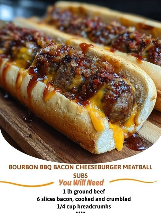 Bourbon BBQ Bacon Cheeseburger Meatball Subs 😋