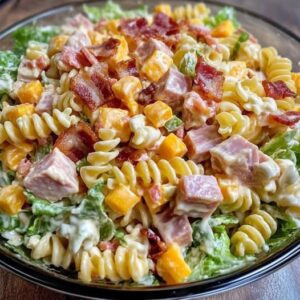 Dieser Club-Sandwich-Nudelsalat ist das ultimative Sommergericht! Vollgepackt mit Nudeln, knackigem Gemüse, würzigem Käse, Speck und einem cremigen Ranch-Dressing ist er perfekt für Zusammenkünfte bei warmem Wetter.