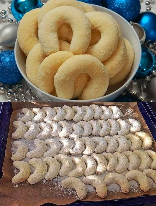 Cremige Kokos-CroissantsZutaten:250 g Mehl100 g Maisstärke50 g Zucker5 Beutel Vanillezucker250 g Butter170 g Kokosraspeln1 EL Backpulver10 EL Schlagsahne50 g Zucker4 Beutel VanillezuckerZubereitung:Das Rezept wird auf der nächsten Seite fortgesetz ADVERTISEMENT Next→