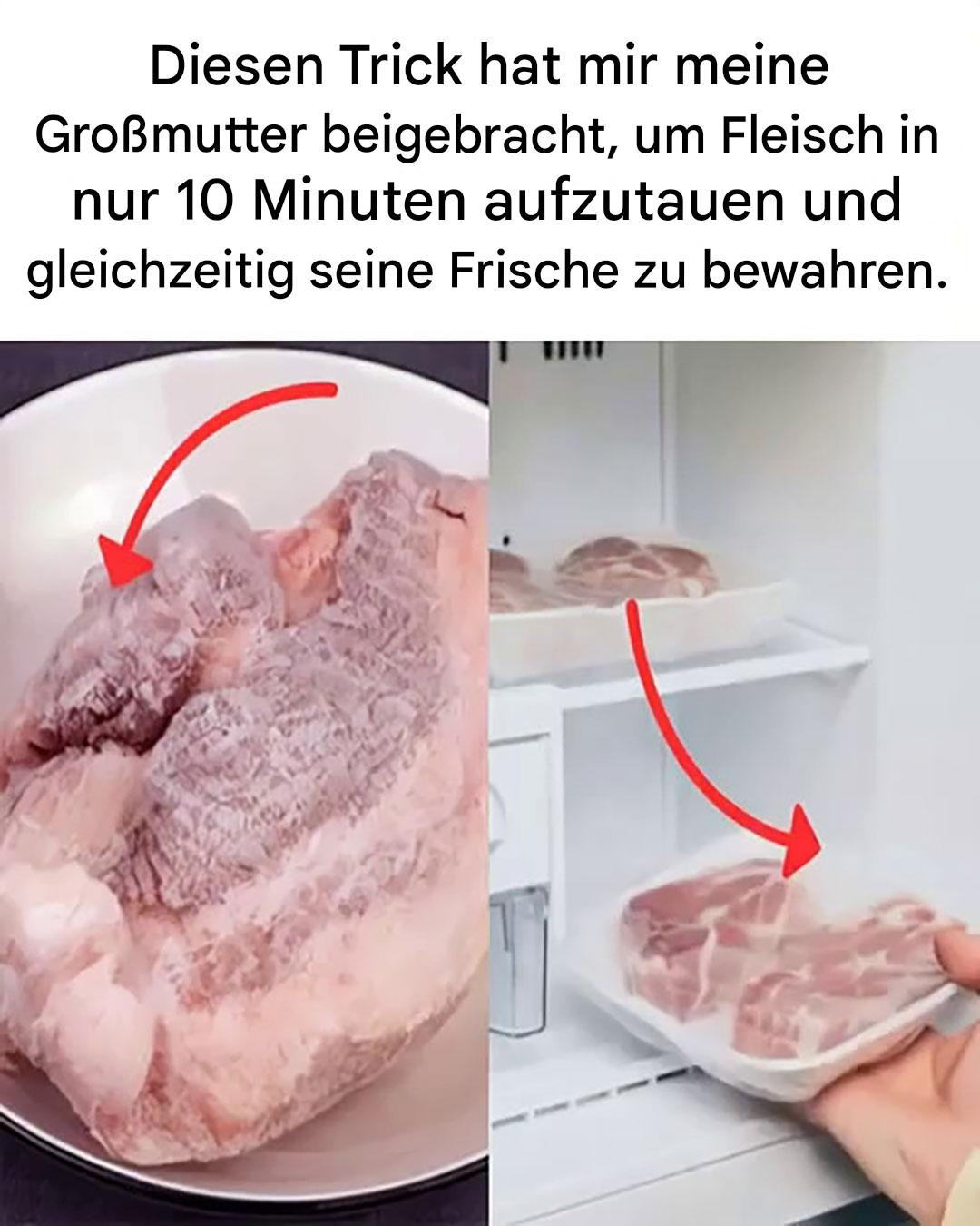 Das klassische Szenario: Es ist 19 Uhr, alles ist fertig … nur das Fleisch ist noch im Gefrierschrank. Das Menü ändern oder stundenlang warten – keine Option. Die gute Nachricht: Es gibt einfache und effektive Tricks, mit denen Sie Ihr Fleisch in nur 10 Minuten auftauen können, ohne Kompromisse bei Geschmack oder Konsistenz einzugehen. Bereit, diese Tipps zur Essensrettung zu entdecken? Folgen Sie der Anleitung!