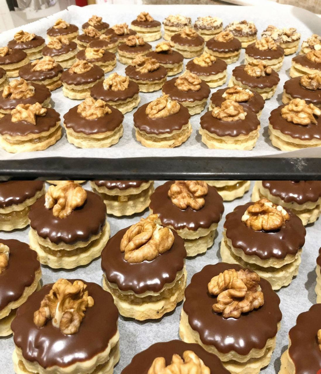 Schokolade zum Überziehen Walnusshälften zum Verzieren