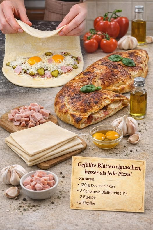 8 Scheiben Blätterteig (TK), 2 Scheiben pro Portion