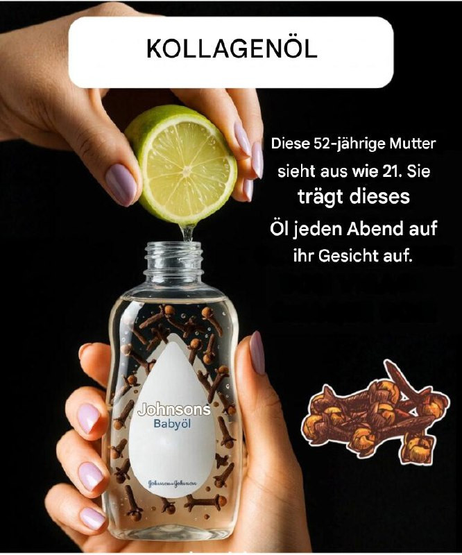 Mit der Zeit verliert die Haut auf natürliche Weise an Festigkeit und Ausstrahlung. Kosmetikprodukte versprechen oft das Blaue vom Himmel … aber was wäre, wenn die Lösung bereits in Ihrer Küche läge? Durch die Kombination von sanftem Babyöl, der belebenden Wirkung von Zitrone und der antioxidativen Kraft von Nelken können Sie ein besonders sinnliches, nährstoffreiches Schönheitsöl selbst herstellen, das Ihrem Teint neue Strahlkraft verleiht und die Haut geschmeidig und optimal mit Feuchtigkeit versorgt hält.
