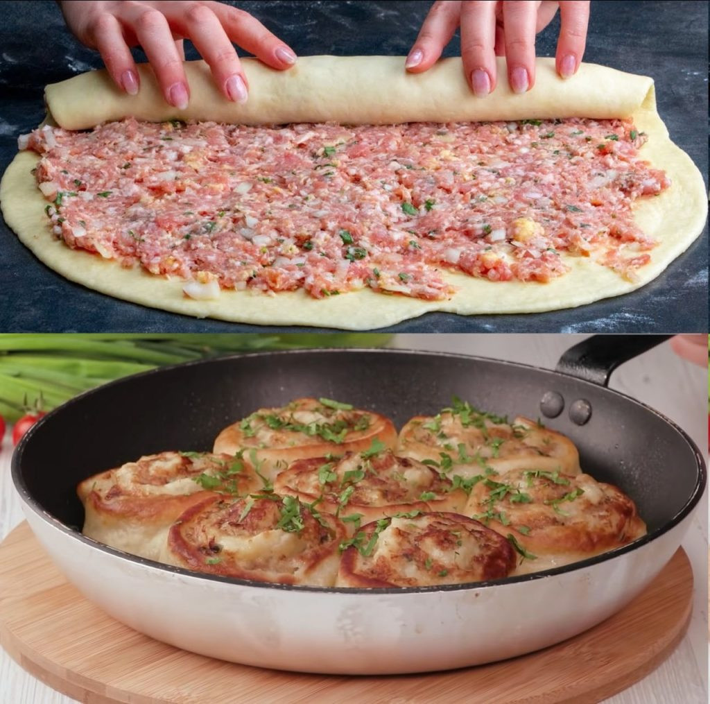 Herzhafte Hackfleischrolle mit Pizzateig – Schnell, saftig und unwiderstehlich!