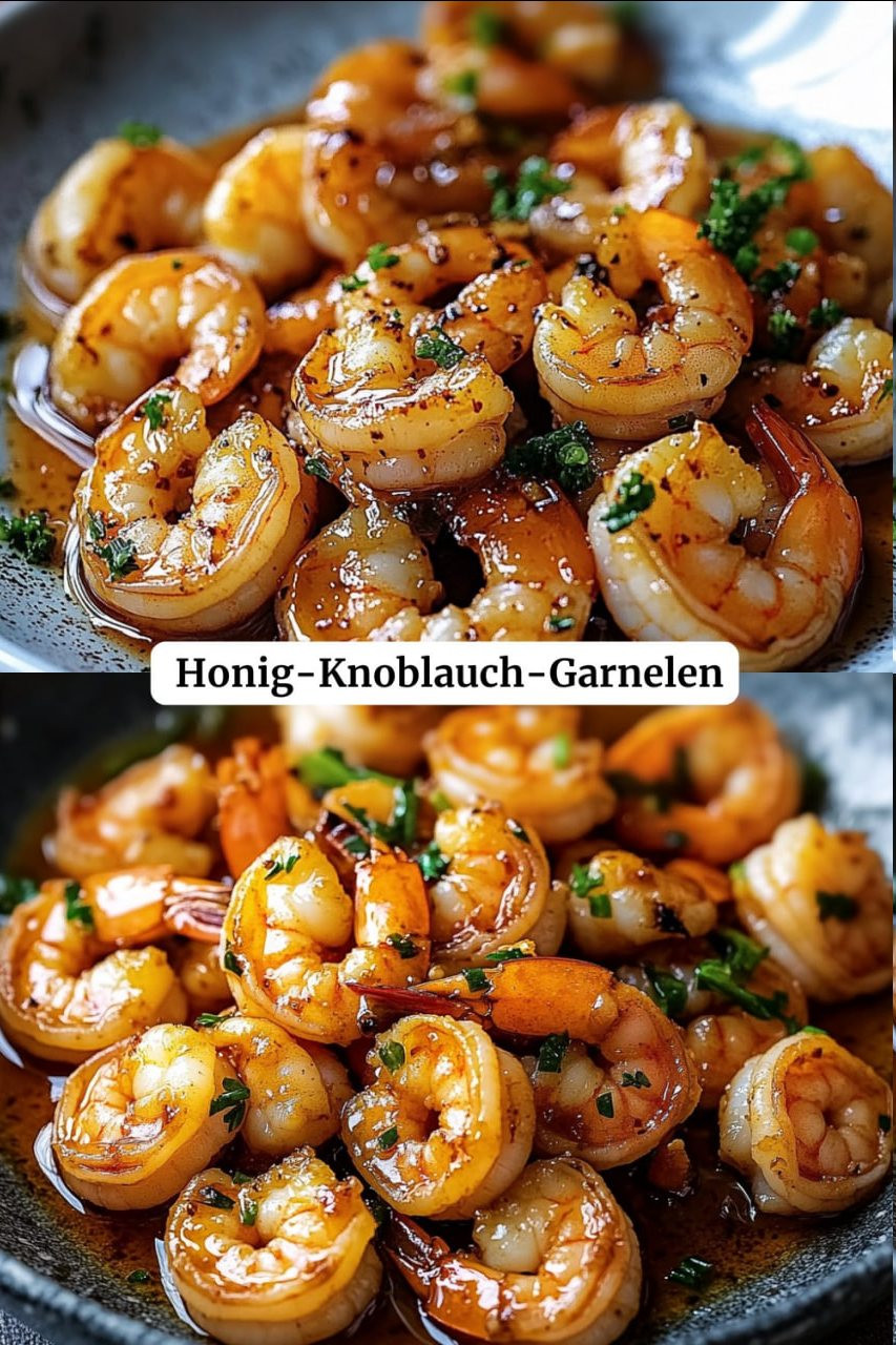 Diese Garnelen in einer süßen Honig-Knoblauch-Soße sind einfach zuzubereiten und liefern unglaublich viel Geschmack! Mit einer leichten Schärfe und einem Hauch von Sesam ist dieses Gericht ein echtes Highlight – perfekt zu Reis oder gebratenen Nudeln.