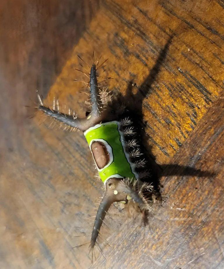 Es kroch langsam über den Boden, und dunkle Stacheln ragten aus seinem Körper hervor – lang und dünn, als wollte es ausdrücklich warnen: „Fass mich nicht an.“