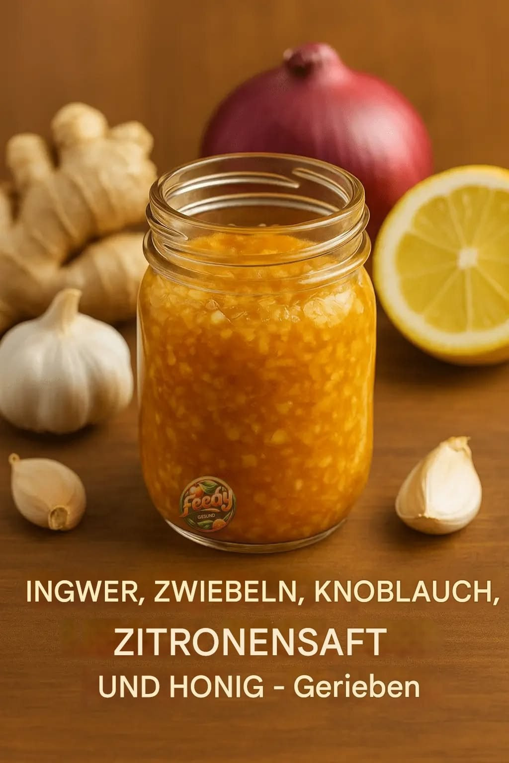 Sind Sie schon einmal auf ein Hausmittel gestoßen, das so einfach, so natürlich und doch so wirksam ist, dass es fast unglaublich erscheint? Lassen Sie sich überraschen. Diese einfache Mischung aus Ingwer, Knoblauch, Zwiebeln, Zitronensaft und Honig ist nicht nur eine Reminiszenz an traditionelle Wellness-Rezepte – sie ist eine kraftvolle Mischung, die Husten lindert, das Immunsystem stärkt und die Atemwege unterstützt – und das alles mit Zutaten, die Sie wahrscheinlich schon in Ihrer Küche haben.