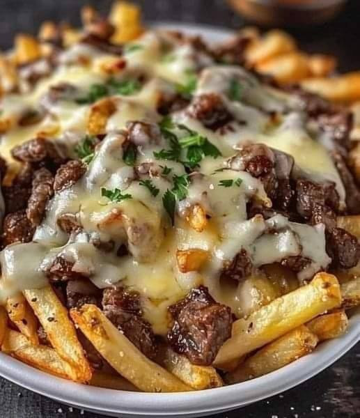 Philly-Cheesesteak-Pommes sind eine köstliche Fusion aus saftigen Steakstreifen, geschmolzenem Käse und knusprigen Pommes. Dieses Gericht kombiniert den herzhaften Geschmack des klassischen Philly-Cheesesteaks mit der Einfachheit von Pommes und wird garantiert der Star jeder Mahlzeit oder Party. Perfekt für einen Snack, eine Vorspeise oder ein Hauptgericht – dieses Rezept ist schnell zubereitet und ein wahrer Publikumsliebling.