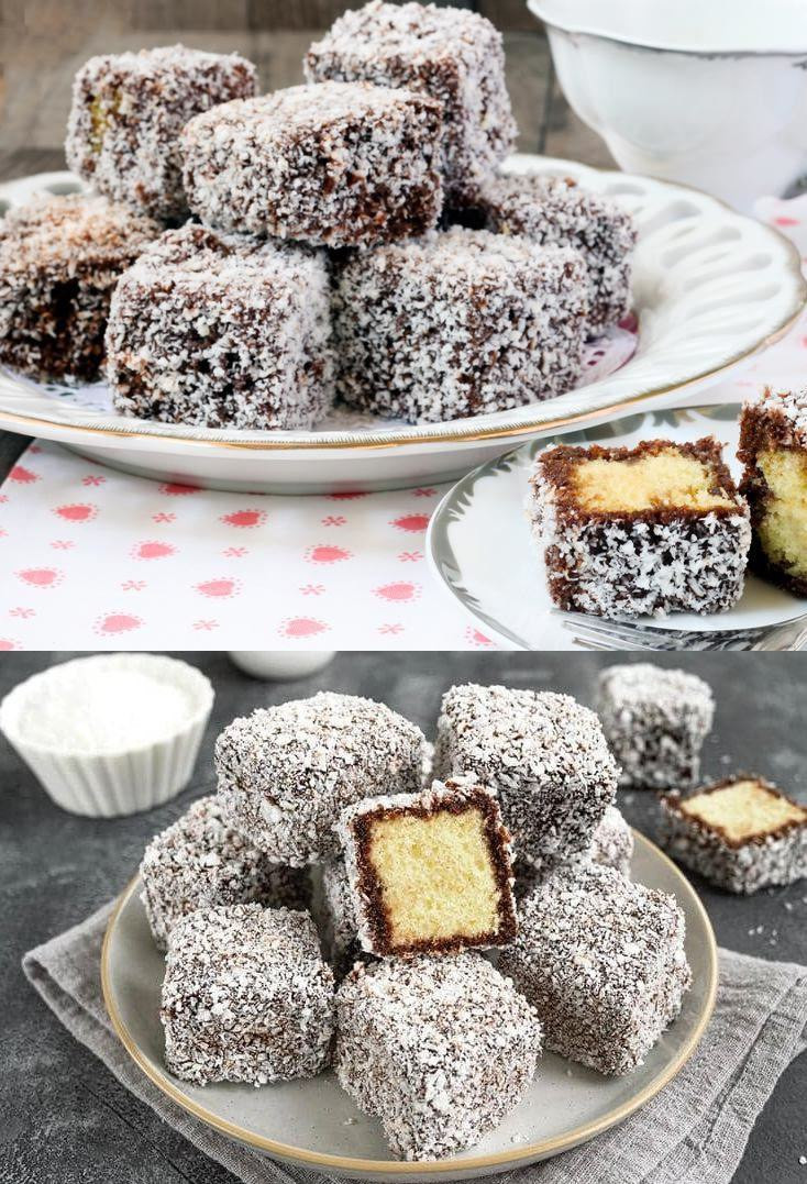 “KOKOSWÜRFEL NACH ALTHERGEBRACHTEM REZEPT. Die Kombination aus weichem Gebäck, Kokosnuss und Schokolade kann nicht schiefgehen…