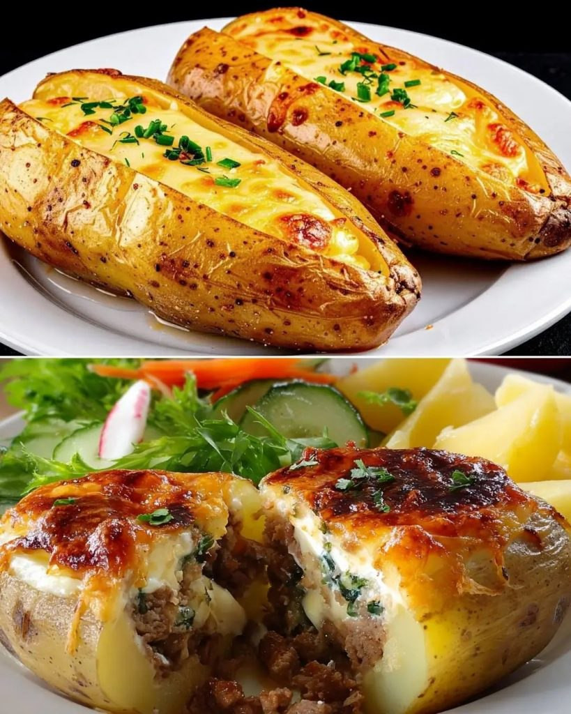 Gefüllte Ofenkartoffeln mit Rindfleisch und Pilzen 🥔🍄 Ein herzhaftes Gericht für gemütliche Familienabende – perfekt fürs Wochenende! Zutaten Für die gefüllten Kartoffeln: 4 große Ofenkartoffeln 200 g Rinderhackfleisch 1 Ei 1 Zwiebel, fein gewürfelt (ca. 150 g) 100 g Champignons, in Scheiben geschnitten 50 g frischer Spinat, gehackt 140 g Mozzarella, gerieben 2 Knoblauchzehen, fein gehackt … Read more