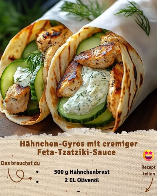 Hähnchen-Gyros mit cremiger Feta-Tzatziki-Sauce – Der Familienhit für schnelle Feierabende Rezept im ersten Kommentar