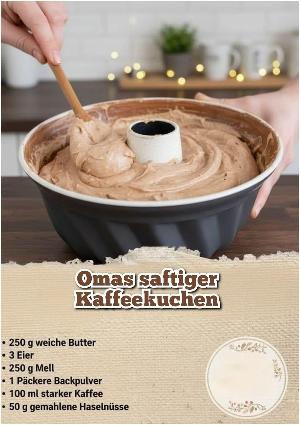 Zutaten 220 gr Zucker 5 Eier Vanillezucker 1 pack 220 gr Margarine oder Butter 320 gr Quark 300 gr Mehl backpulver 5 tl etwas puderzucker Anleitung siehe Fortsetzung auf der nächsten Seite