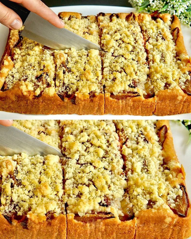 Pflaumenkuchen , der auf der Zunge zergeht! Einfach und köstlich! Rezept in 15 Minuten