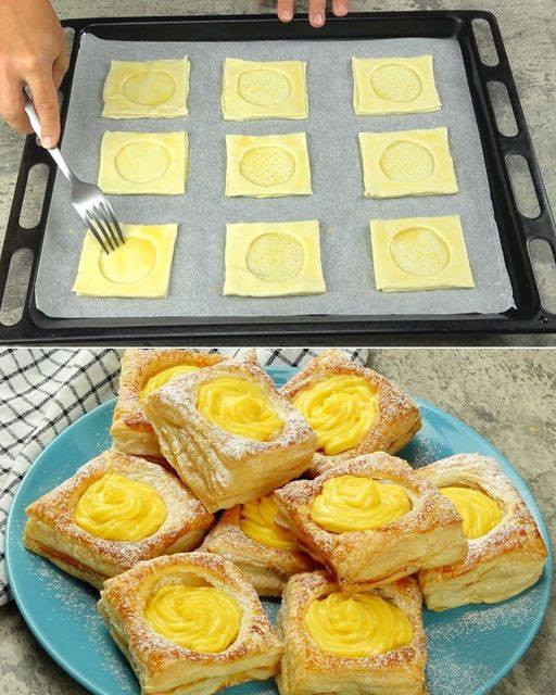 Für diese quadratischen Blätterteigtaschen können Sie auch andere Füllungen verwenden: