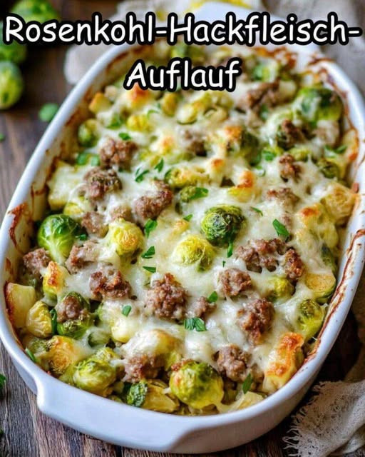 Rosenkohl-Hackfleisch-Auflauf – so einfach & würzig..RezeptZutaten • 500 g Rosenkohl • 500 g Hackfleisch • 1 Zwiebel • 2 Knoblauchzehen • 200 g geriebener KäseNächste Next→