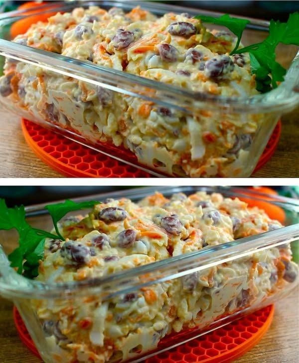 Salat mit Bohnen aus der Dose Zutaten:3 hartgekochte Eier;Frischkäse;1 Dose Kidneybohnen;1 gekochte Karotte;2 Knoblauchzehen;Mayonnaise;Salz und Pfeffer. Zubereitung:Das Rezept wird auf der nächsten Seite fortgesetz ADVERTISEMENT Next→