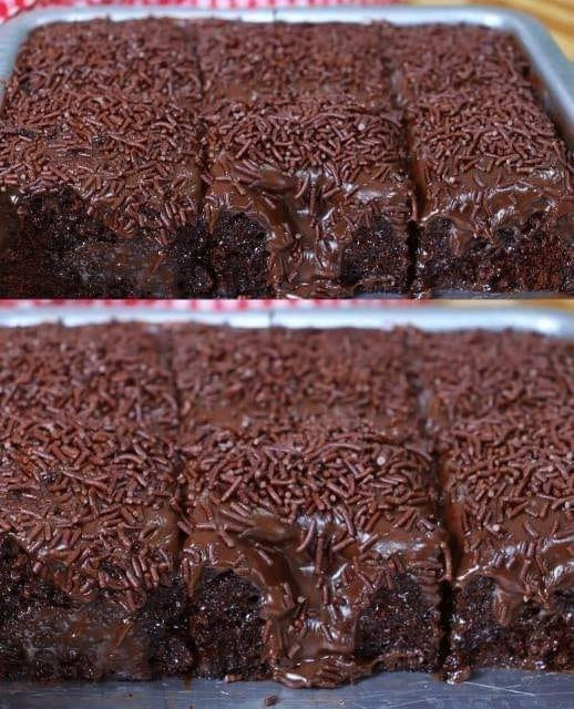 In Stücke schneiden und servieren. Dieser Kuchen ist perfekt für jeden Anlass und schmeckt besonders gut zu einem Glas Milch oder einer Tasse Kaffee. Genießen Sie diesen schnellen und einfachen Schokoladenkuchen mit seinem lockeren und saftigen Teig!