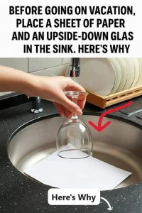 We all know the routine before a vacation: lock the doors, set the alarms, unplug appliances. But there’s one simple, often-overlooked trick that can save you from coming home to nasty surprises—placing an upside-down glass and a piece of paper in your sink.