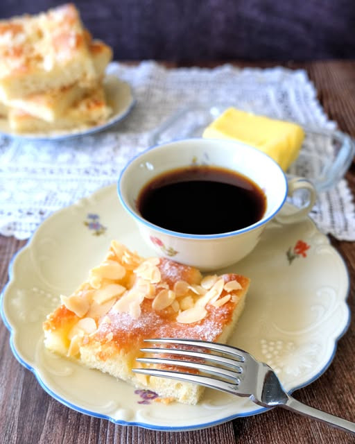 Servieren Sie den Butterkuchen warm oder bei Zimmertemperatur mit einer Tasse Kaffee oder Tee.