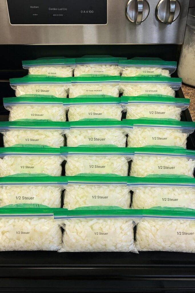 Qualität und Geschmack bewahren: Eingefrorene Zwiebeln schützen Ihre Augen.